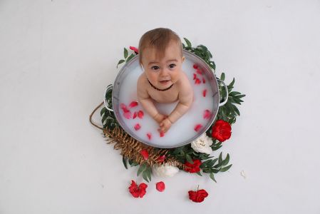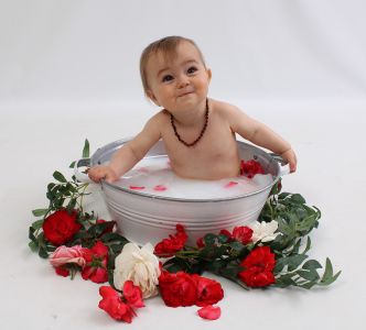 La séance comprends la préparation du décor fleuri ou fruité ainsi que la mise à disposition d’une petite baignoire remplie d’eau et de lait.